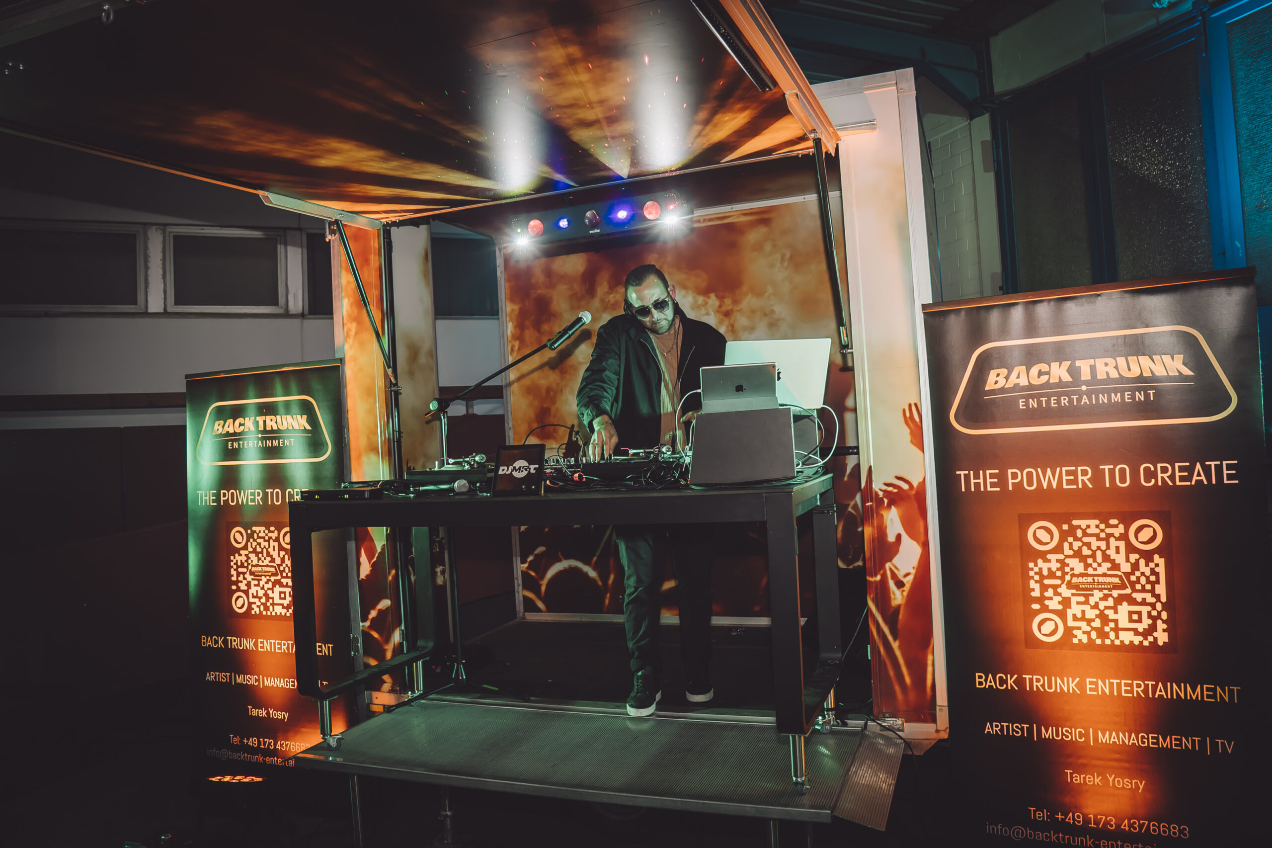 ein professioneller DJ der die Menge im Griff hat und auf das Publikum eingeht bei Veranstaltungen wie: